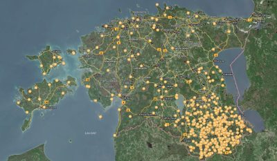 Ülekaehusõ man om pilt kaardist, kon omma nätä suidsusanna Eestin põraaigsidõ andmidõ perrä. Läte: X-GIS, Maa- ja Ruumiamet.